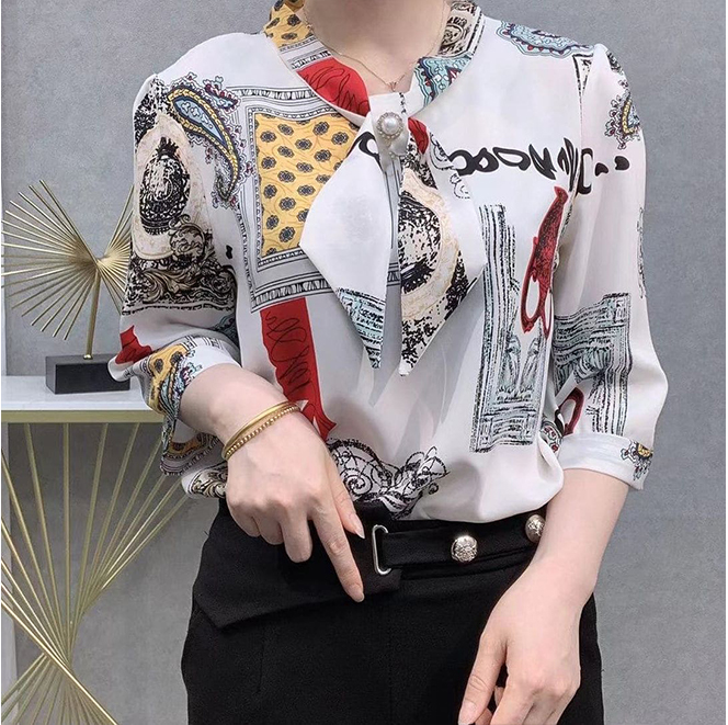 5分鐘前新品韓版寬鬆顯瘦收腰上衣女洋氣減齡復古印花雪紡衫 經典雙色 耐穿耐看 多色可選 大碼可穿 - 【急速發貨】1入組 NT$ 899