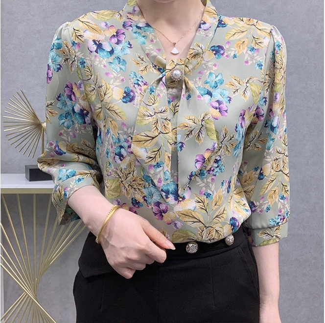 4分鐘前新品韓版寬鬆顯瘦收腰上衣女洋氣減齡復古印花雪紡衫 經典雙色 耐穿耐看 多色可選 大碼可穿 - 【限時搶購】3入組 NT$ 1399