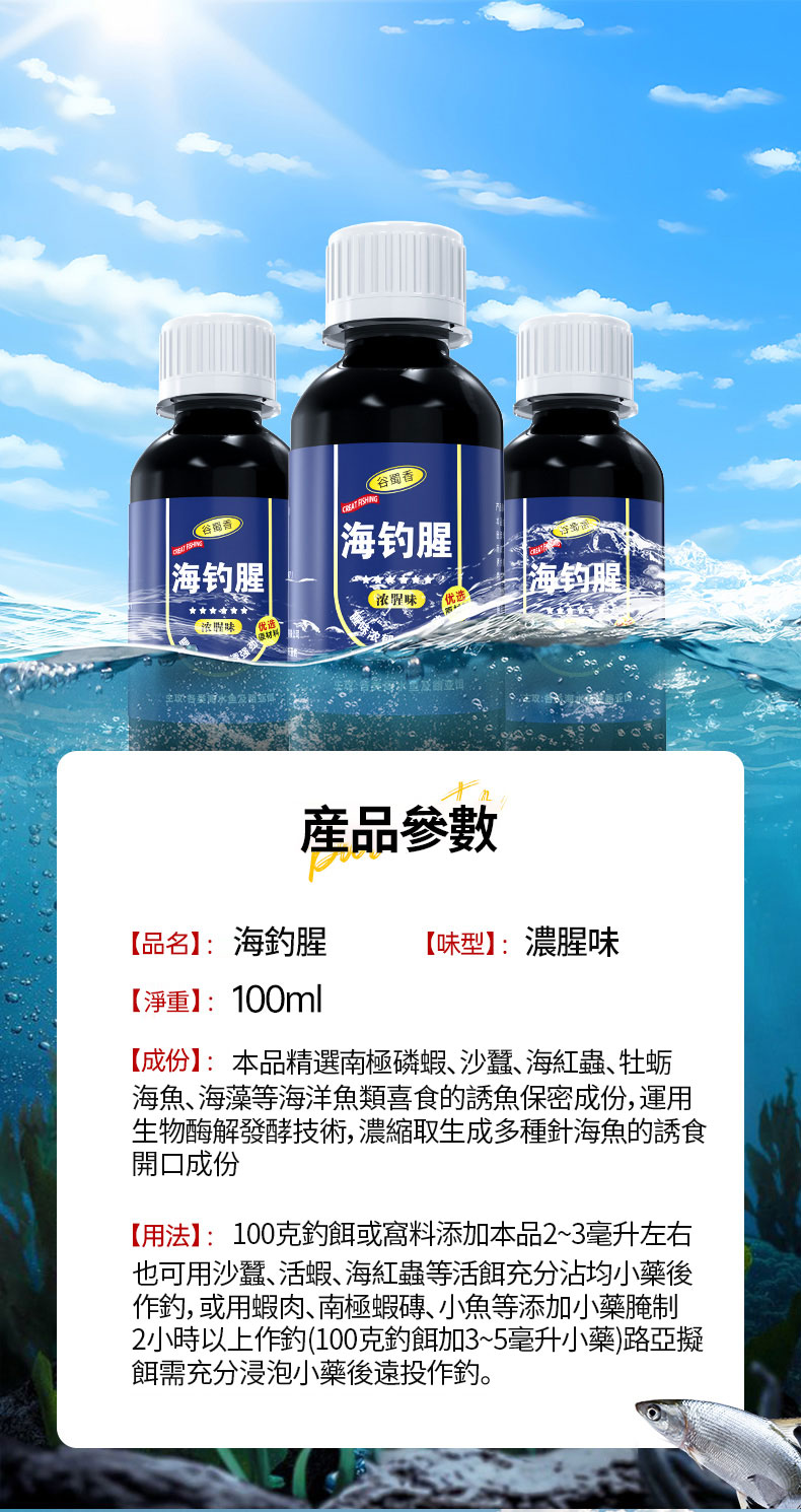 半小時前濃腥聚誘海釣腥聚魚誘魚海釣/路亞通用,連桿爆箱的秘密武器,保準你們都沒看過【釣魚腥】超遠程誘魚迅猛爆護,味型獨特,濃腥聚誘,促食咬鉤快人一步,那腥味遠距離誘魚,激發魚兒攝美容 - 【新品嘗鮮】濃腥聚誘海釣腥6入組-NT$998(均166/入)